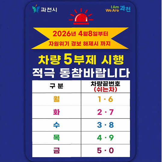 관문. 문원테니스장 주차장 5부제시행 안내